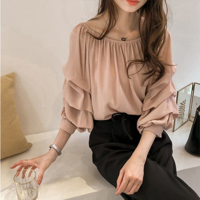 2020秋の新作。袖のふんわり感が何ともいえない大人カワイイ。ワンショルにも着れる着回しブラウス。