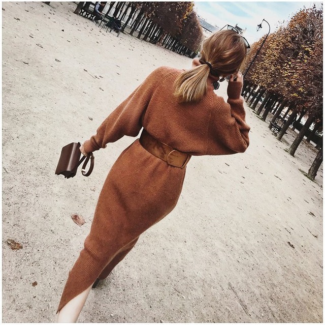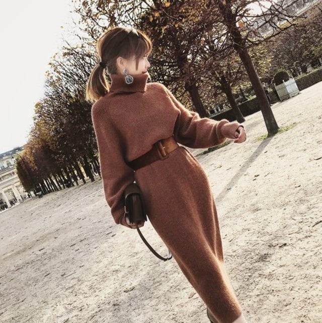 ほんわかニットワンピース。太目のベルトでセンスアップ。印象も柔らかくてハイネックなのであったかい♡