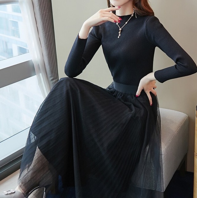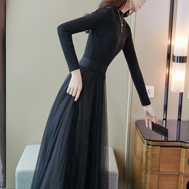 ミッドレングス ワンピース。スカートがチュールレースでエレガントな印象で。。!
