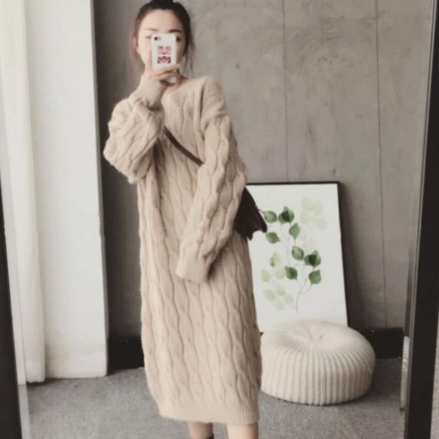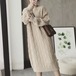 おウチ時間にも、さっと大き目コートとショートブーツでお出掛にも。。活躍するニットワンピース。