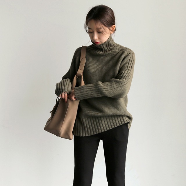 コートインでシンプルに着たいセーター。あえてのベーシックなカラーで着こなして。。