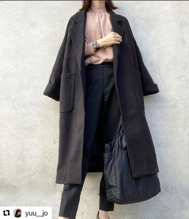 大きめにざっくり羽織る感じがカッコイイコート。袖口を折り返すとこなれた感じに。。