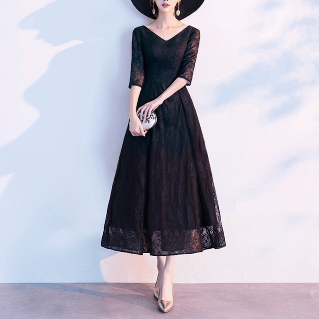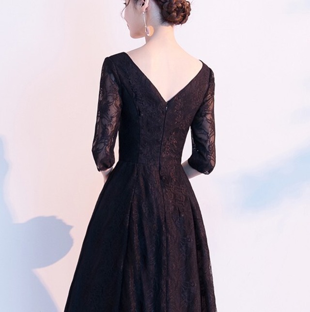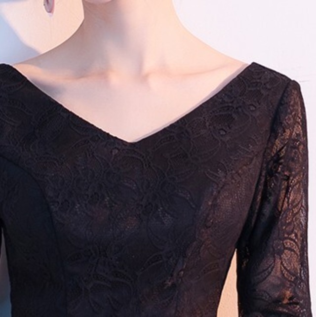 クラシックモダンなレースのイブニングドレス。上品でちょっと高貴な気分を味わえます。。