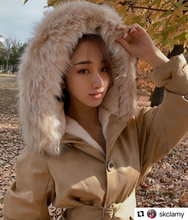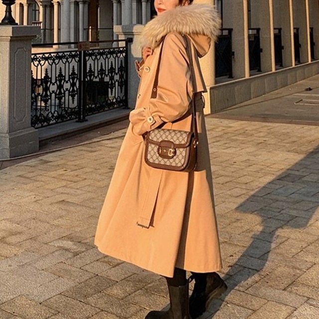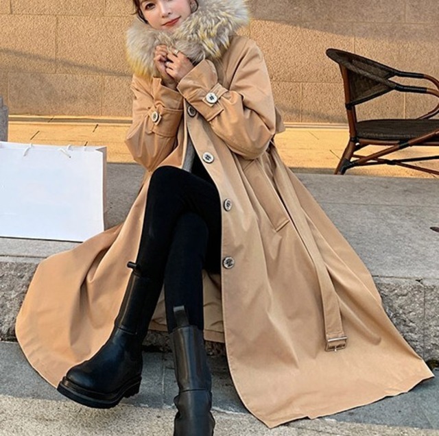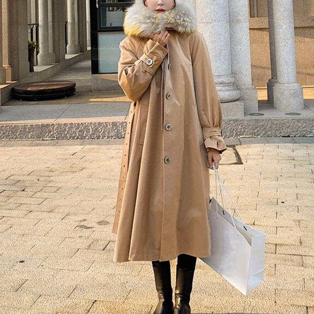 フードの周りにファーが付いたコート。生地が厚めなので真冬でも寒くありません♡小顔効果も♡