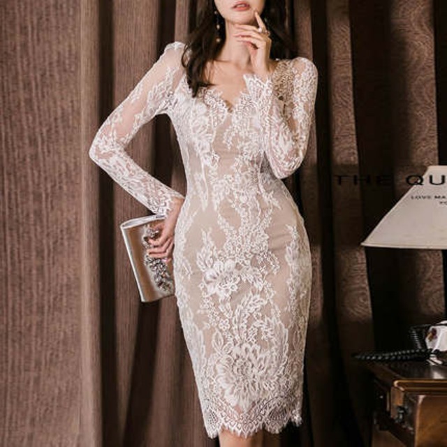 長袖のレースドレスは、大人キレイさが際立ちます♡ちゃんとオシャレした気分になれるドレスです♡