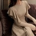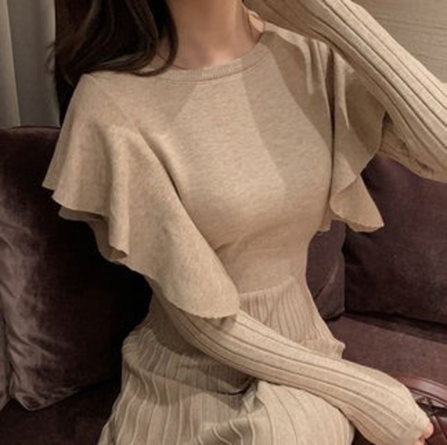 肩からウェストにかけてのフリルが女らしいニットワンピース♡後ろリボンもカワイイ♡