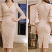 ウエストと肘にあしらった切り替えががポイントのレースドレス♡