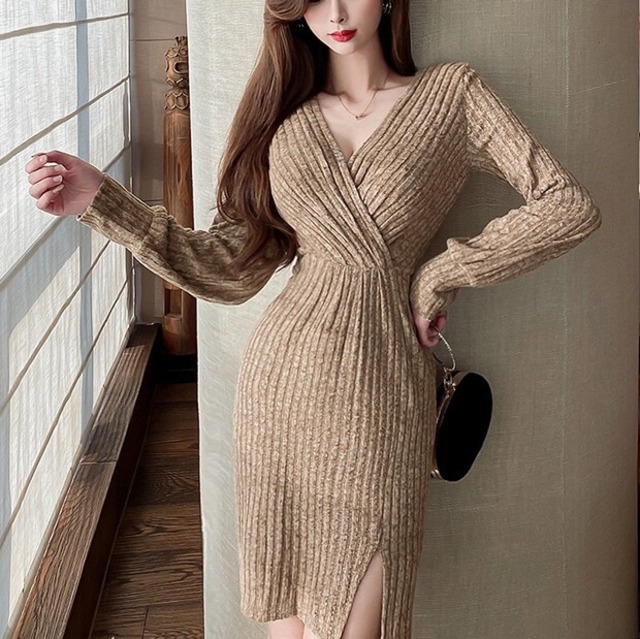 女らしさが際立つデザインのニットワンピース♡素材感はカジュアルなので色っぽくなりすぎない♡