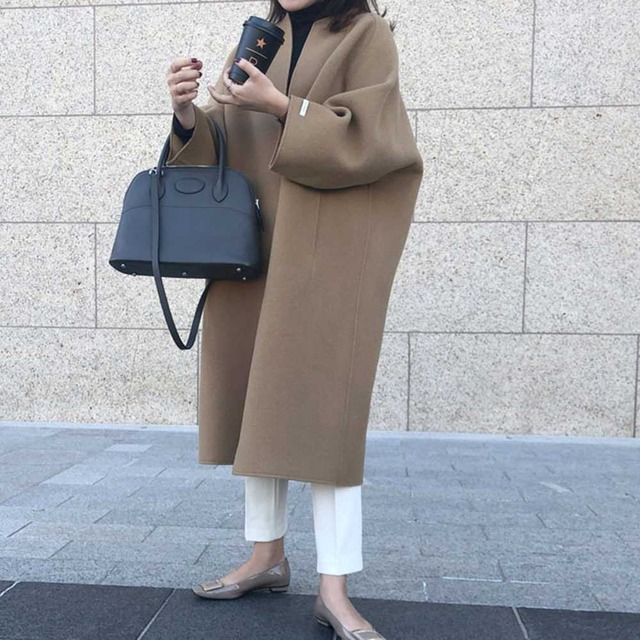 ノーカラーのミドル丈コート。羽織れる感じも今年らしい♡カジュアルにもシックにも活躍する合わせやすい一着♡