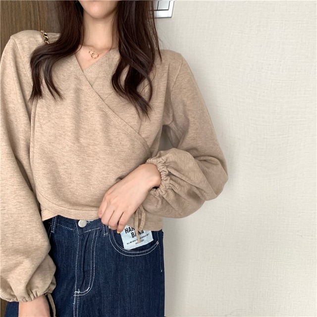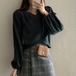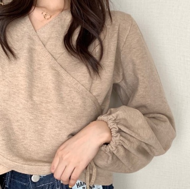 クロスワーク ランタンスリーブのショートセーター♡袖口のリボンもカワイイ♡