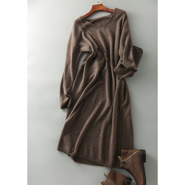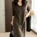 シンプルなニットワンピース♡ベーシックなデザインがエレガントで上品に仕上がります。ドロップショルダーが今年らしい♡