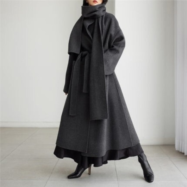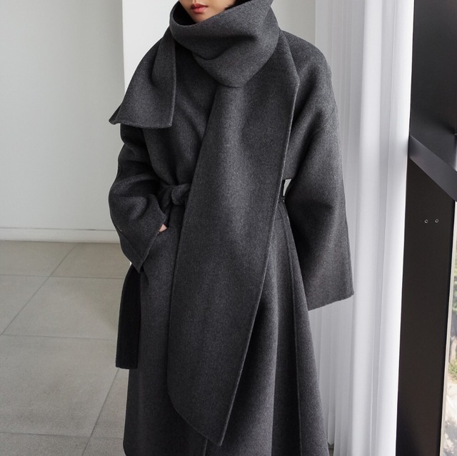 モードな感じのこんなルーズコートの下は春物を着たい♡供布のマフラーで更にセンスアップ♡