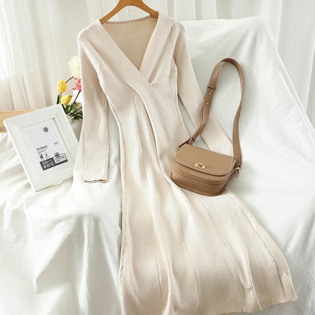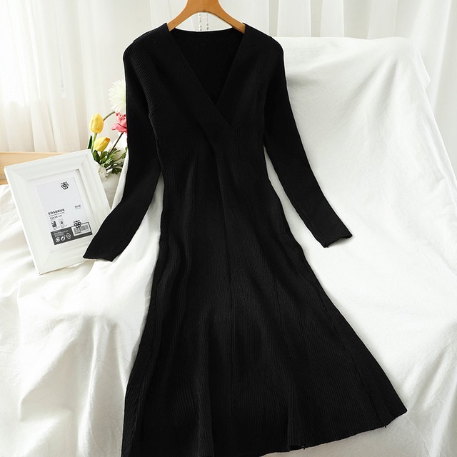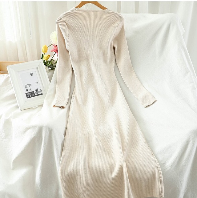クロスされた胸元がポイントの、シンプルなリブニットワンピース♡高い位置にポイントがあるので痩せて見える効果も。。♡