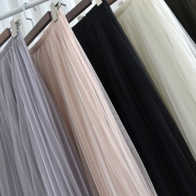 メッシュのプリーツのスカート♡縦線が強調されてスッキリ見えます。何色にも合わせやすいベーシックな4色展開♡