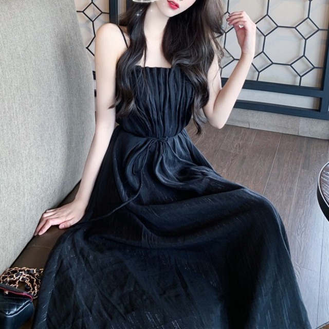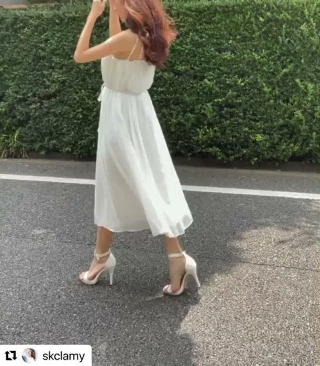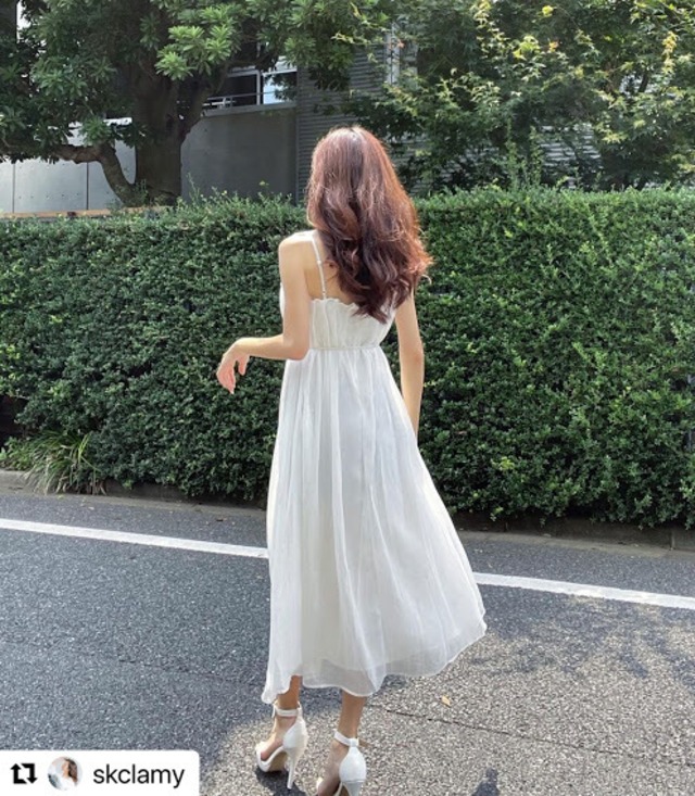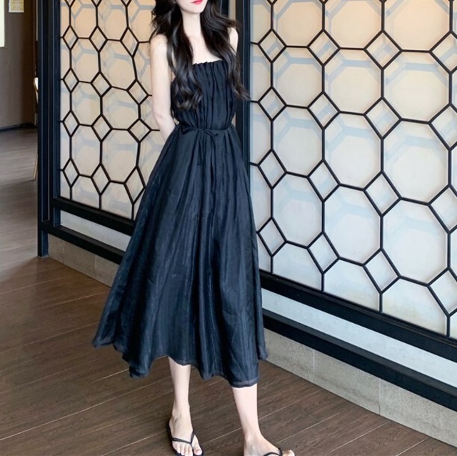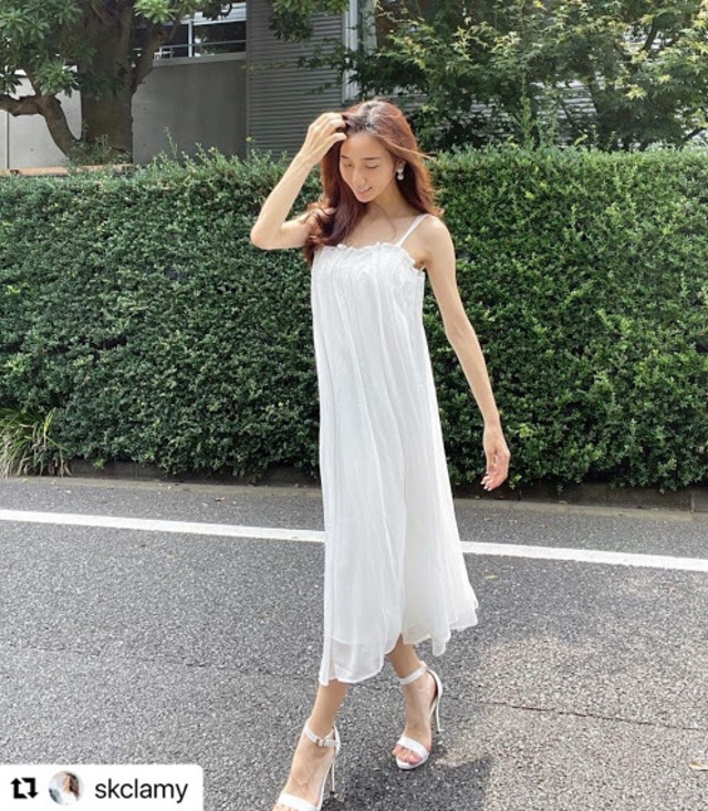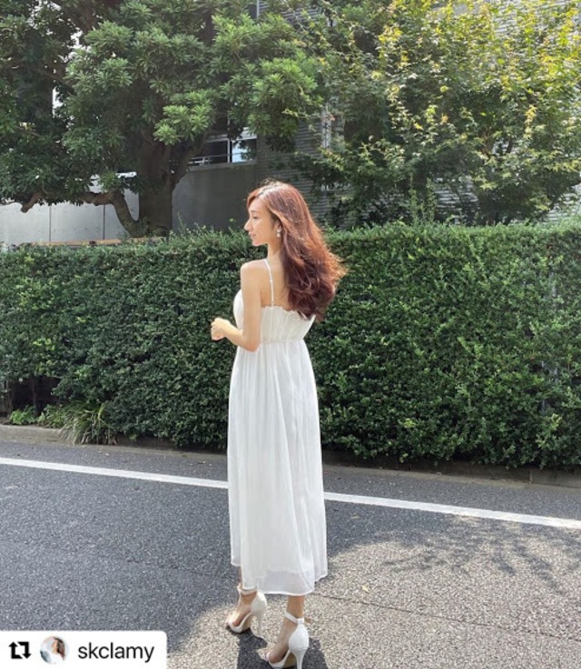 ルーズなトップスのインにぴったりなワンピース♡胸元のタックがオシャレ。夏になったらリゾートでも使えそう♡