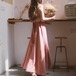 後ろで結んだリボンがポイントのワンピース♡グレイッシュなピンクも大人カワイイ♡インナーにTシャツやバフスリーブのブラウスを合わせて、ジャンスカ風に着こなすのもオススメです♡ベーシックなブラックもシックでステキ♡