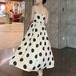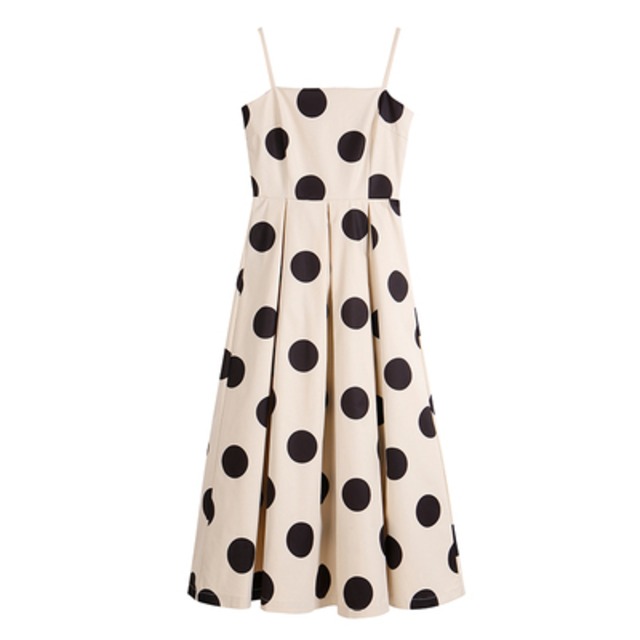 大きめの水玉プリントのストラップワンピース♡ショートカーデやシャツなどとレイヤードを楽しんで♡