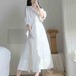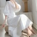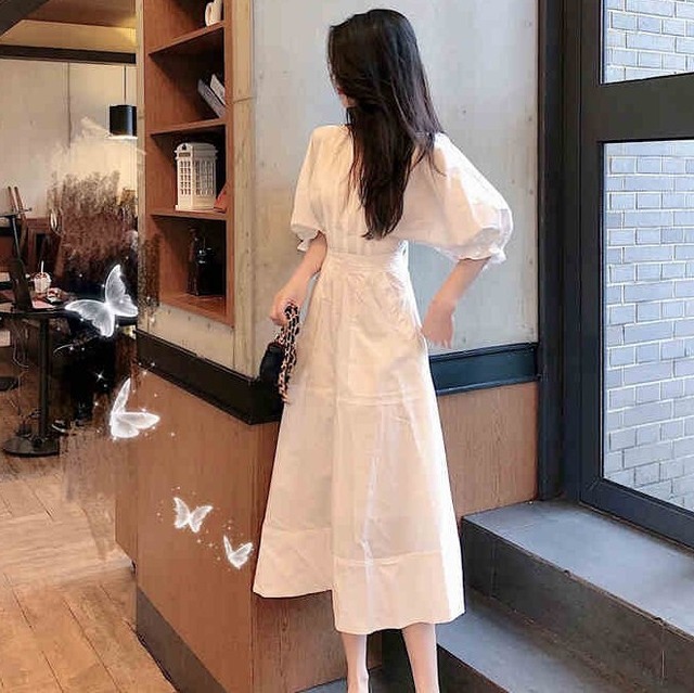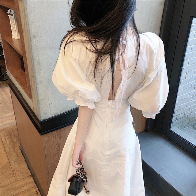 パフスリーブで清楚な白いワンピース♡背中があいてるのもカワイイ♡