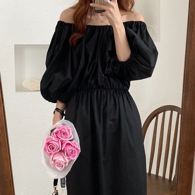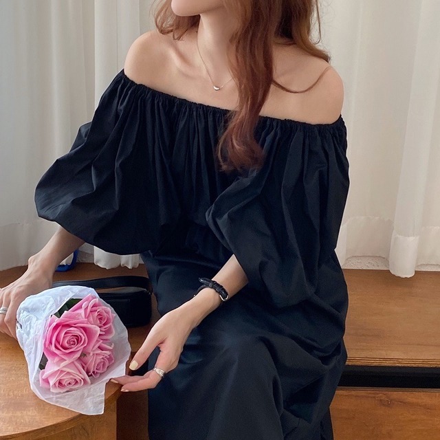 オフショルダーにも着れるランタンスリーブのワンピース♡