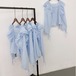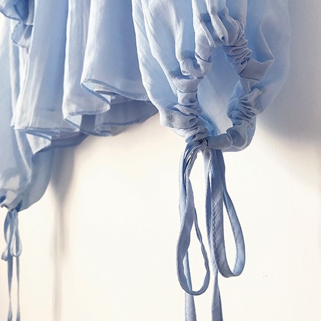 スクエアネックやレース使い、フリルや袖口のリボンまで。。♡大人カワイイ要素が凝縮されたライトブルーのブラウス♡