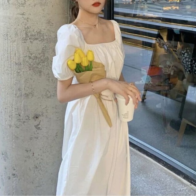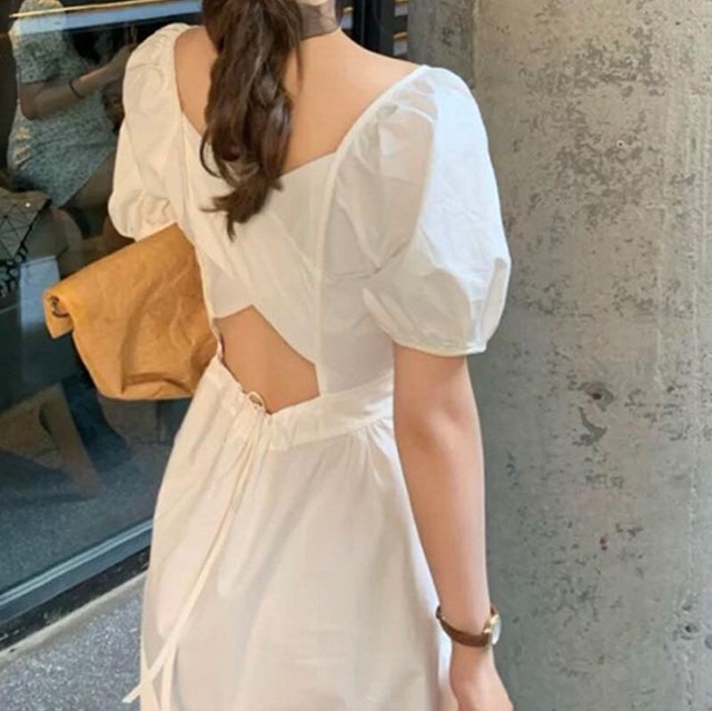 背中のあいたミドルレングスのコットンワンピース♡ナチュラルな感じが好感度アップ♡