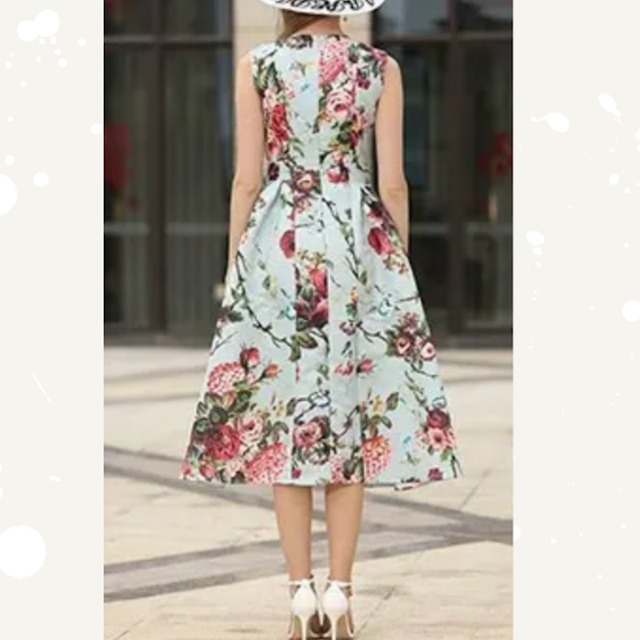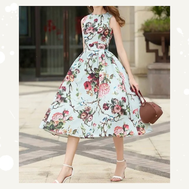 清楚な印象を与えるベーシックなデザインと大柄の花柄がステキにマッチしているワンピース♡着るだけでテンションが上がります♡