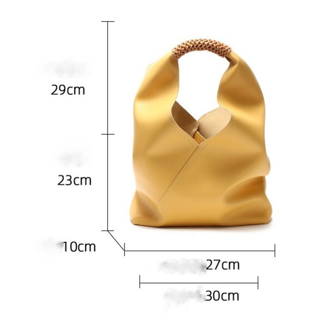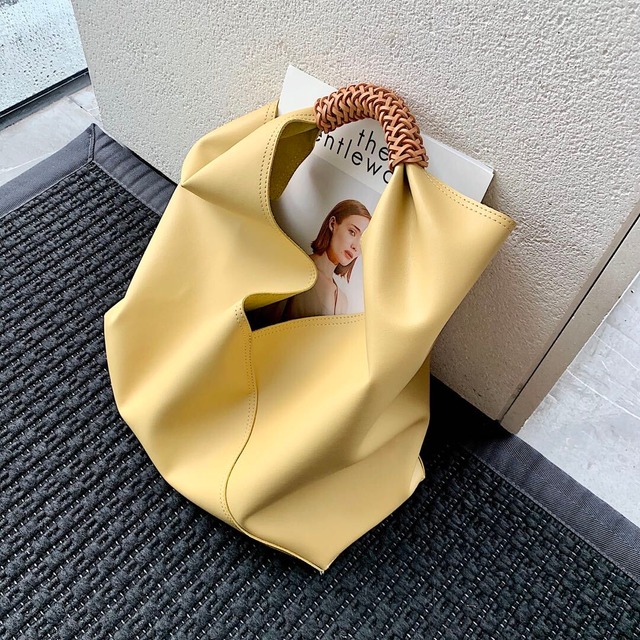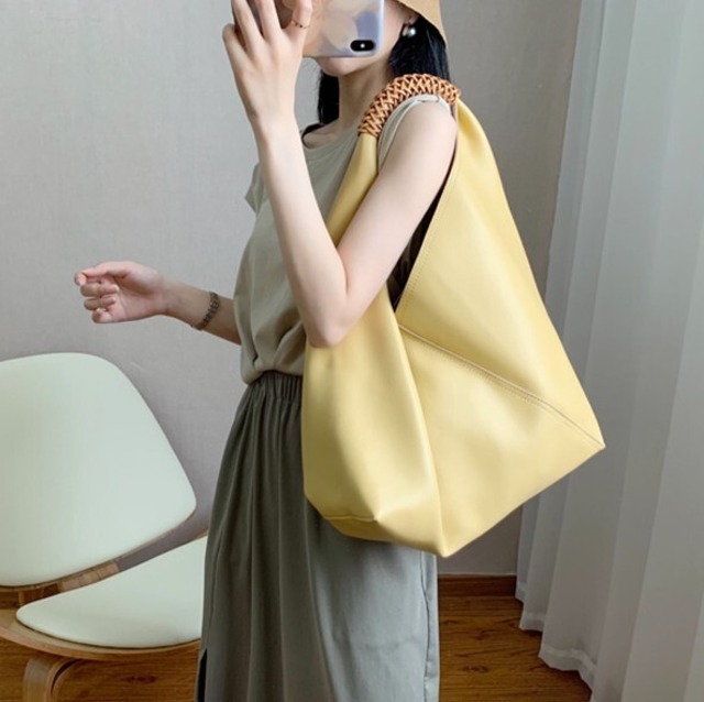 やわらかい牛革で作られたルーズなトートバッグ♡編んだ持ち手の部分がオシャレ♡中身を守るインナーバッグ付きです♡
