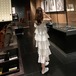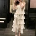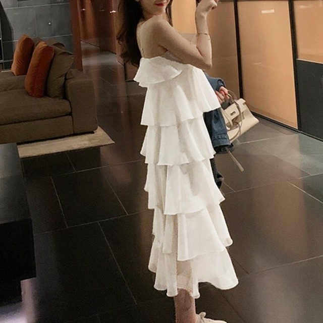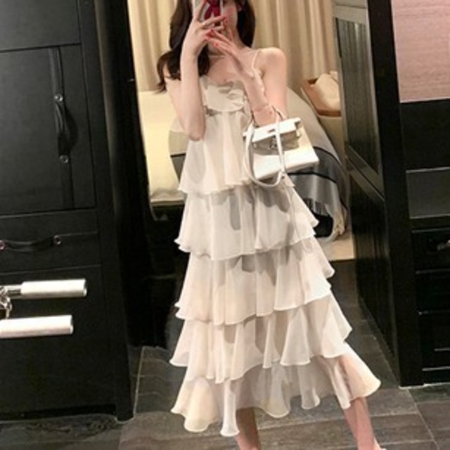 ストラップショルダーの6段ティーアードのワンピース♡ストラップで長さの調節ができます。Tシャツやブラウスと合わせてジャンスカとしても♡