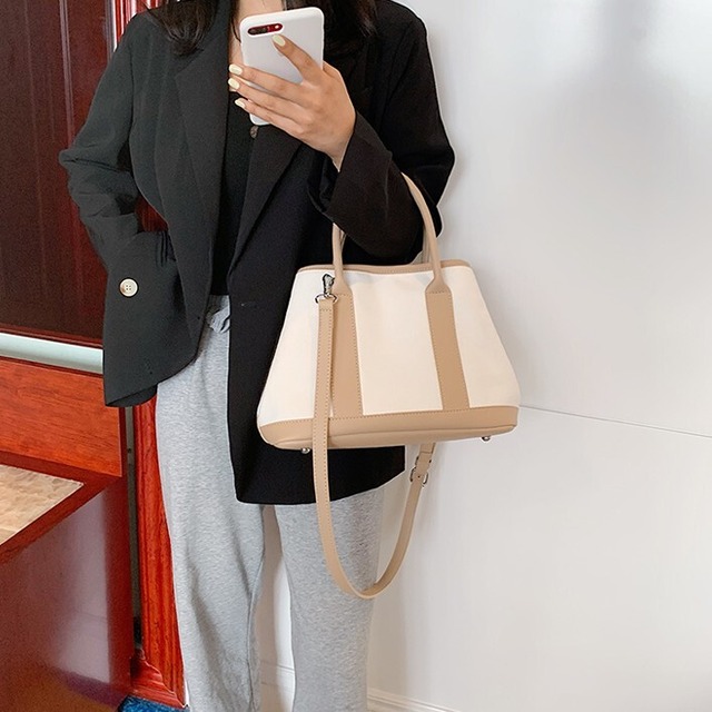 A4の書類やipadもラクラク入る大きさのキャンバス地のトートバッグ♡肩紐付きなのでショルダーとしても♡