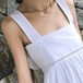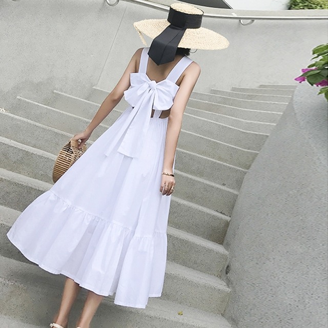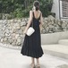 オープンバックのリボンがカワイイワンピース♡胸のすぐ下からのギャザーでAラインを描きます。レイヤードでインにTシャツなどを合わせても♡
