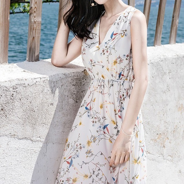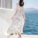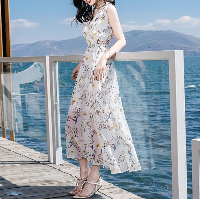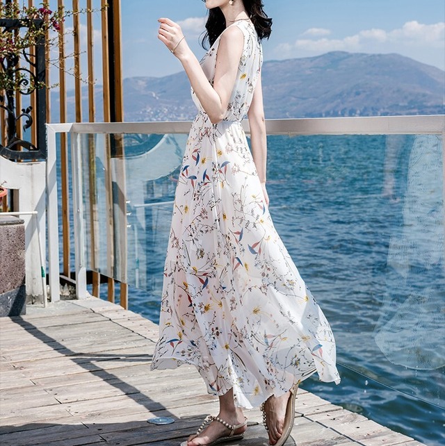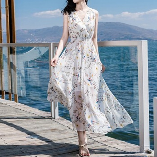しなやかに風になびくシフォンの花柄ロングワンピース♡Vネックでスッキリと女らしい印象♡