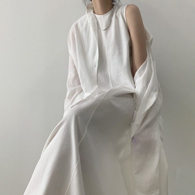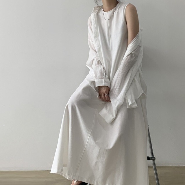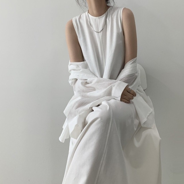 シンプルでロングなラウンドネックのワンピース♡ルーズなAラインのシルエットがシック♡