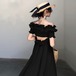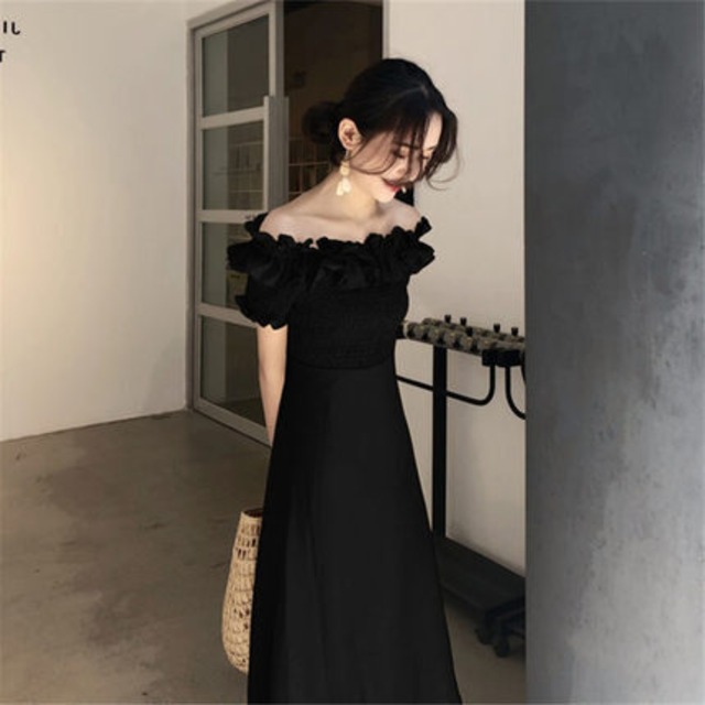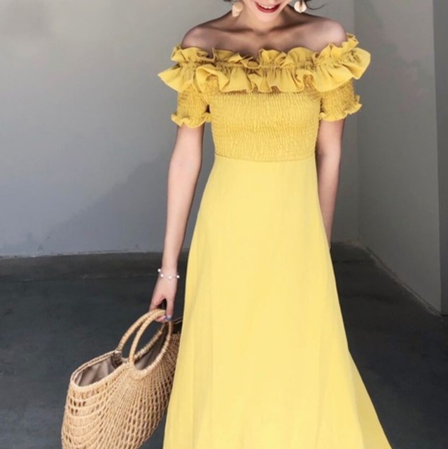 肩のフリルと胸元のシャーリング、背中の空きやリボン結び。。♡カワイイ要素がギュッと詰まったワンピース♡