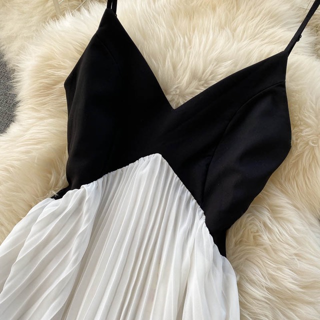 黒いビスチェからブリーツスカートになったワンピース♡スタイリッシュでゴージャスなロングのワンピース♡