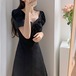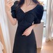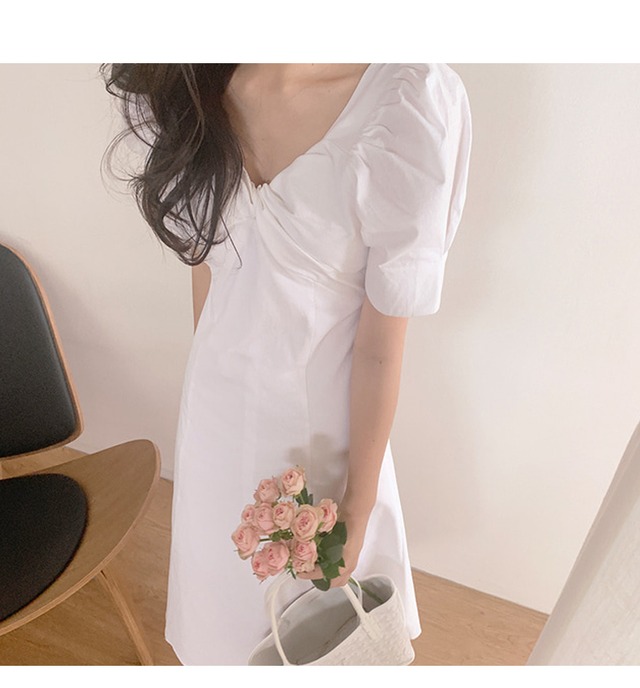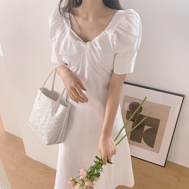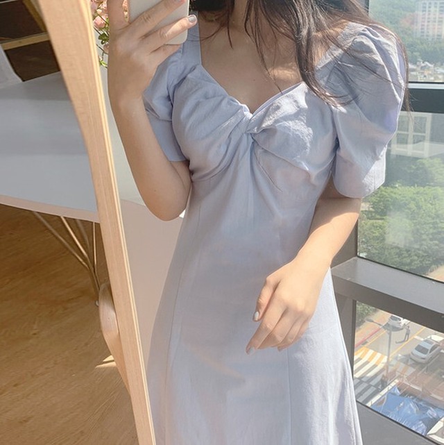パフスリーブでⅤネック♡やわらかなツイストデザイン。さりげないけど、Aラインの清楚さ漂うワンピース♡