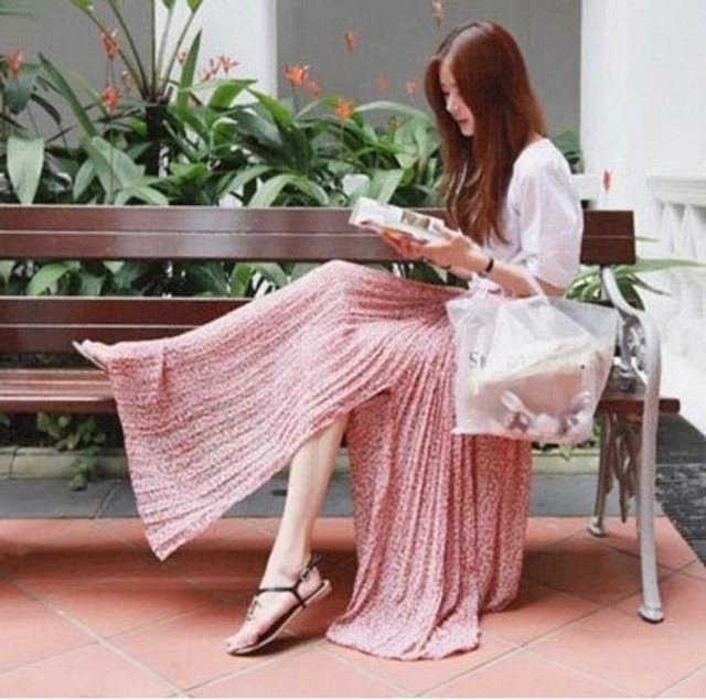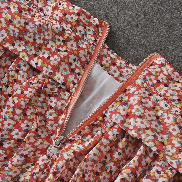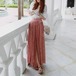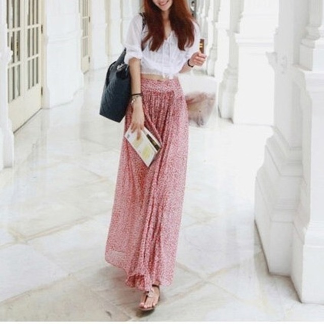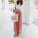 シフォンの刺繍の7分袖ブラウスと花柄ロングスカートのセットアップ♡ウエストのデザインがやせ見せ効果も♡
