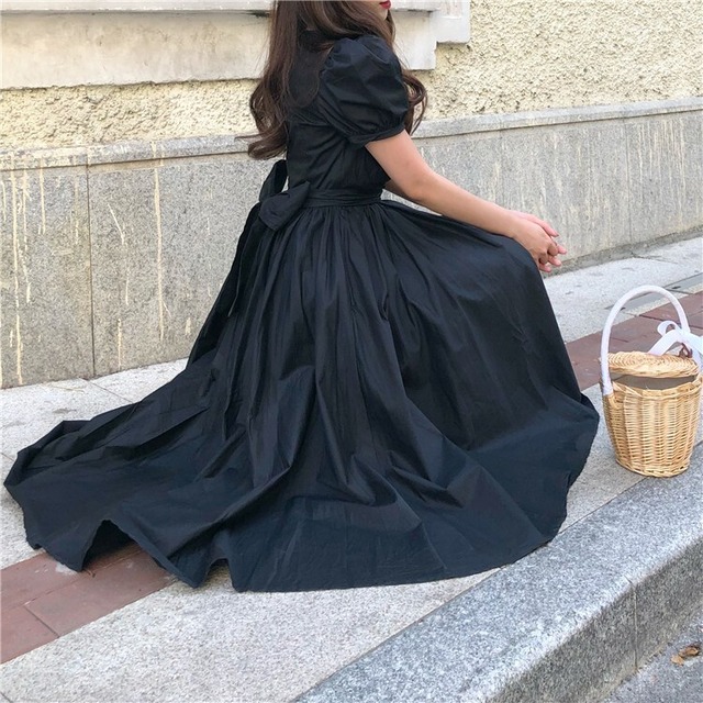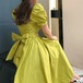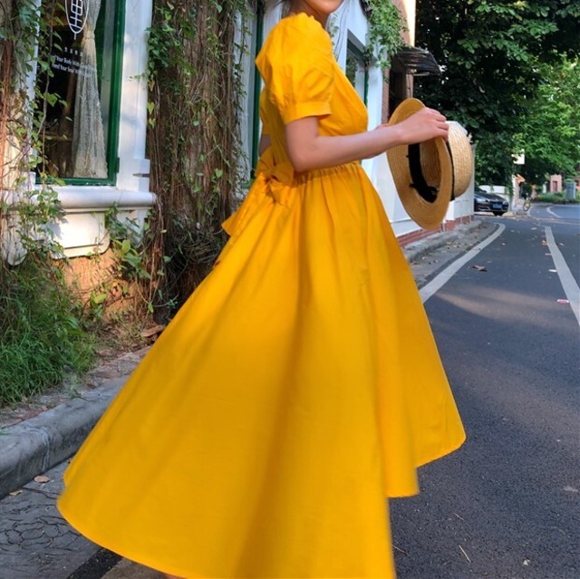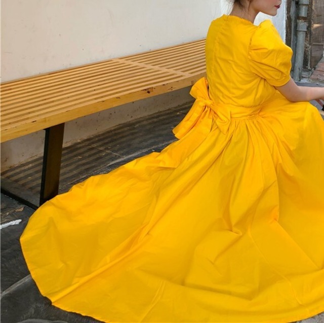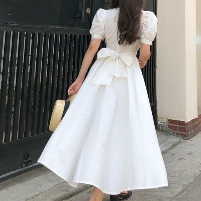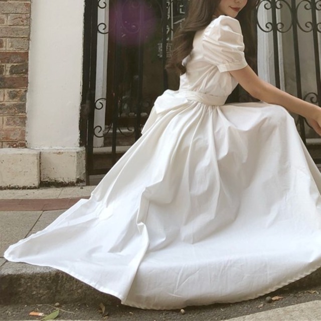 フロントショートのスカートがオシャレなパフスリーブのワンピース♡ウエストのデザインや後ろリボンもカワイイ♡