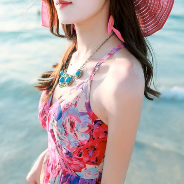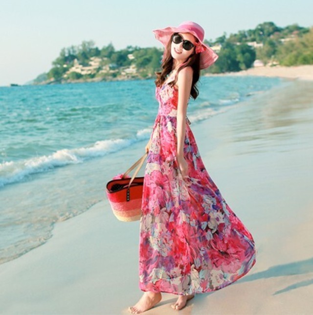 花柄が印象的なロングワンピース♡バックの編み上げも大人カワイイ♡たっぷりフレアーでゴージャス♡