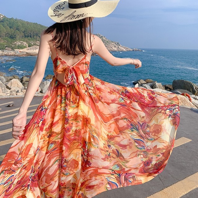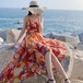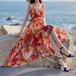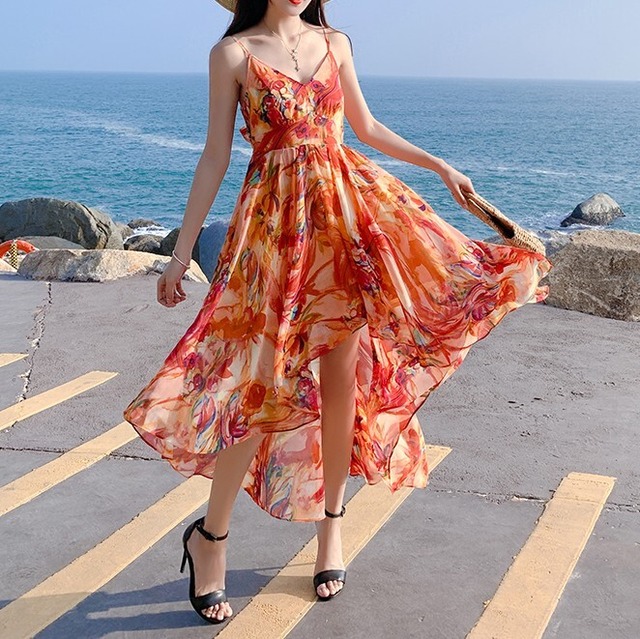レッド系で艶やかな花柄のキャミワンピース♡フロントがショートなスカートもポイント♡