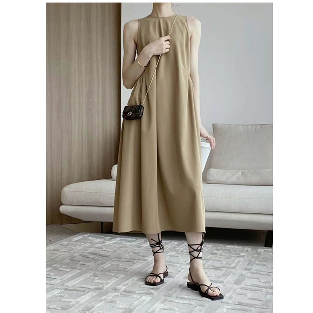 シンプルでシックなAラインのワンピース♡バックのギャザーがカワイイ♡