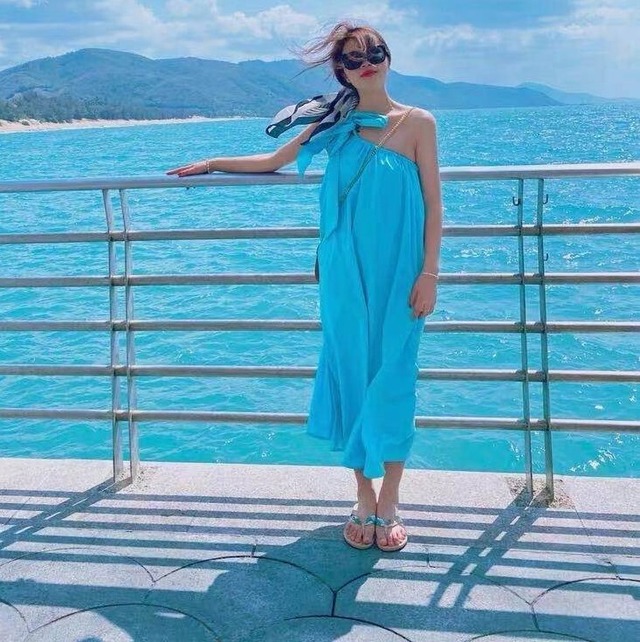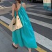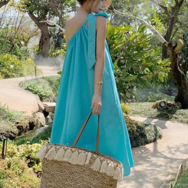 鮮やかなレイクブルーのワンピース♡リボンのワンショルダーが大人カワイイ♡