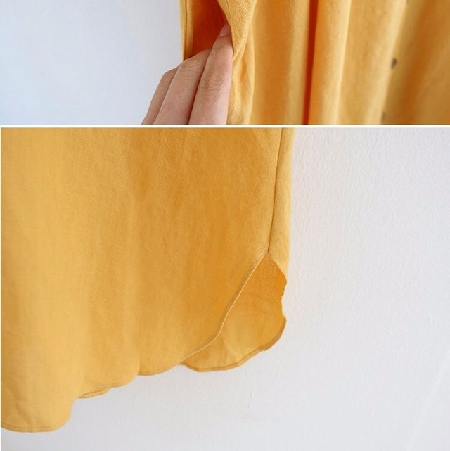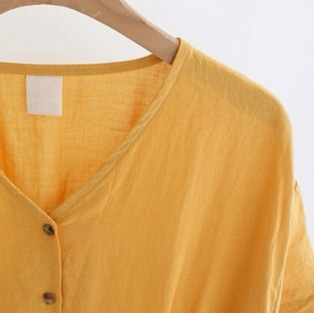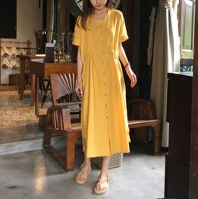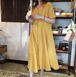 コットンリネンのワンピース♡Ⅴネックのルーズシルエット♡ジンジャーイエローがさわやかな印象♡