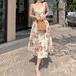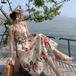花柄がかわいい上品なデザインのワンピース♡リゾートのレストランや女子会でも大活躍しそう♡