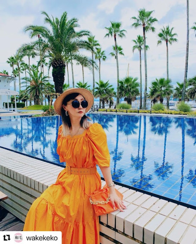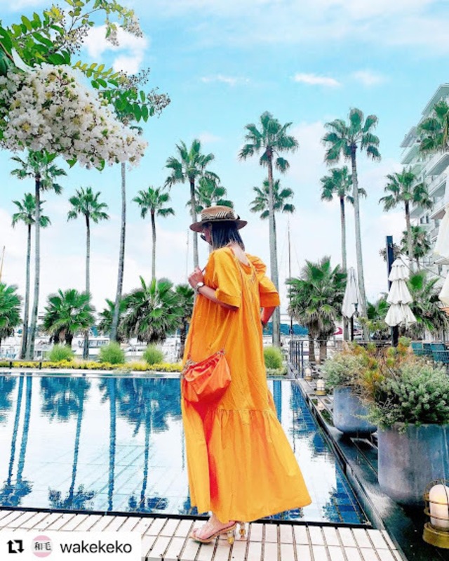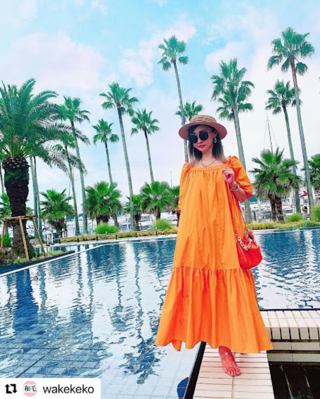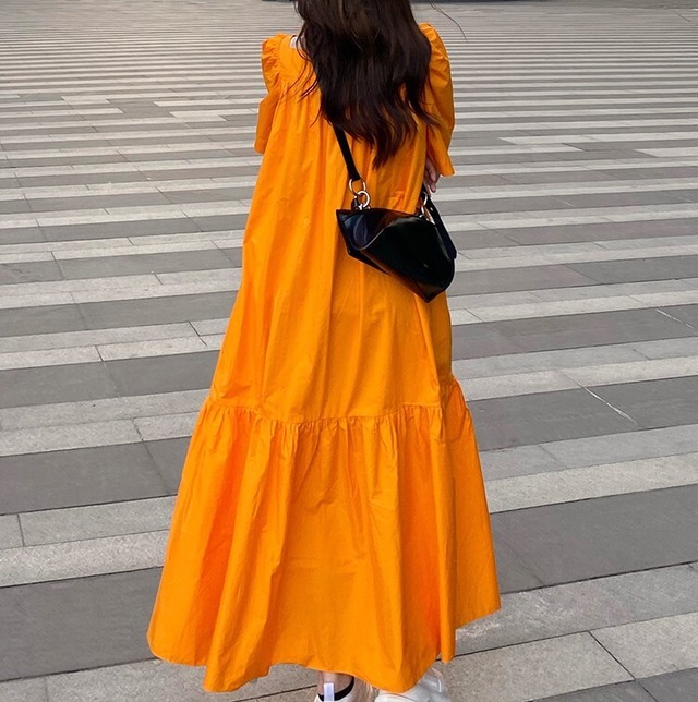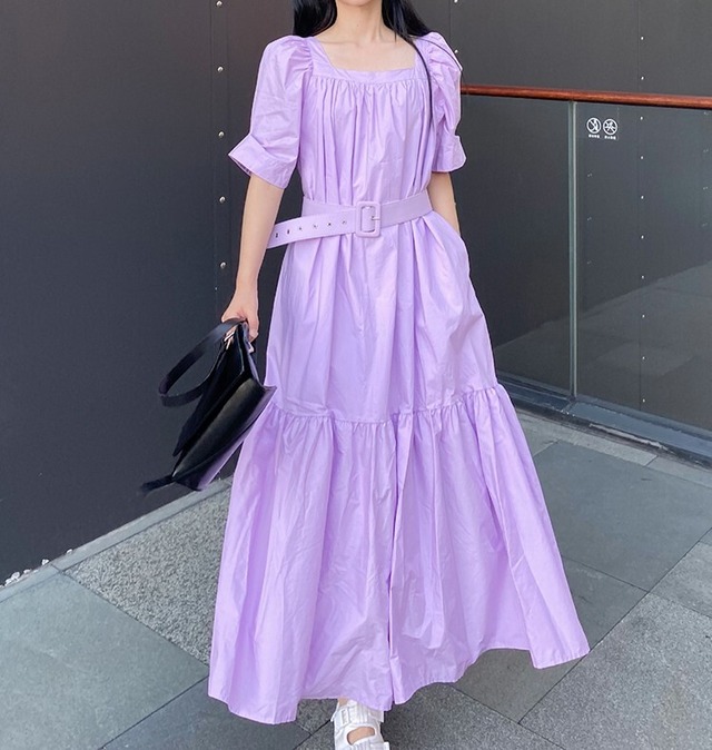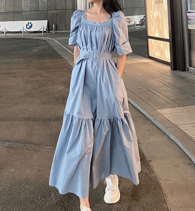共布ベルトをしてもしなくても♡スクエアネックでパフスリーブ、ロングギャザーワンピース♡