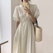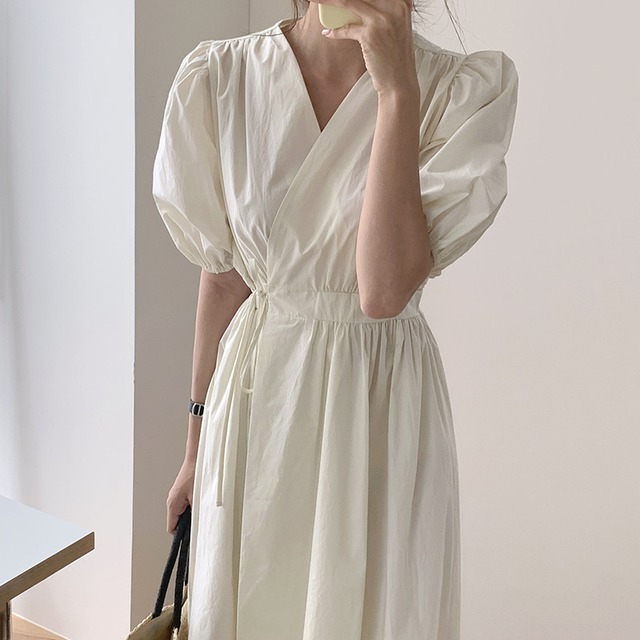 パフスリーブでクロスネックのワンピース♡女らしくシック♡
