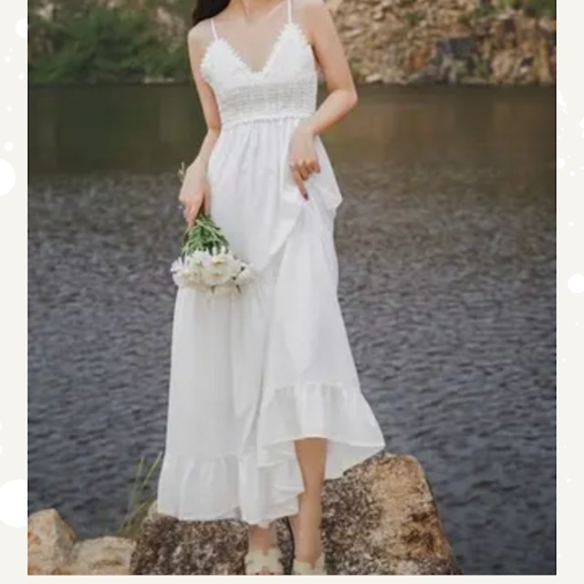 胸元が清楚なレース編みのキャミソールワンピース♡背中のリボン結びも大人カワイイ♡