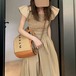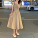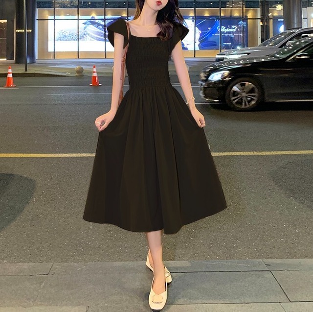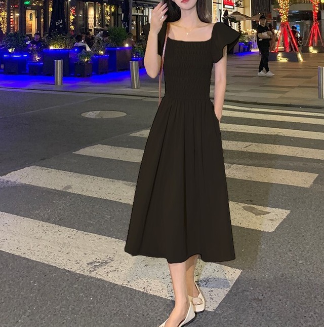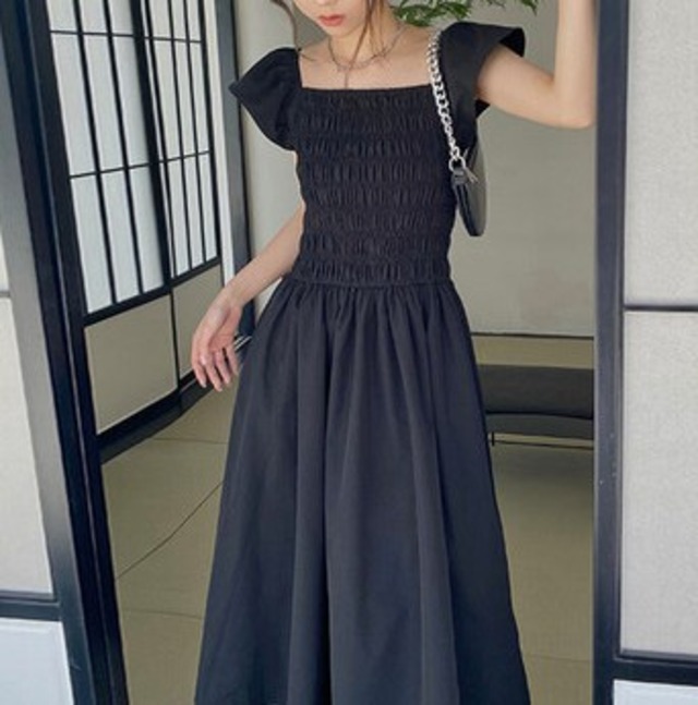スクエアネックが清楚なイメージのシャーリングワンピース♡ミドル丈なので着回ししやすい♡