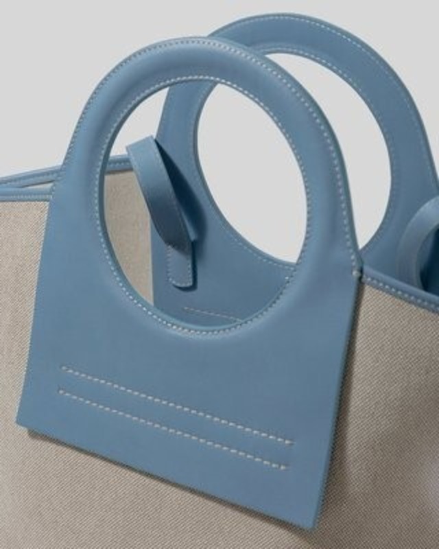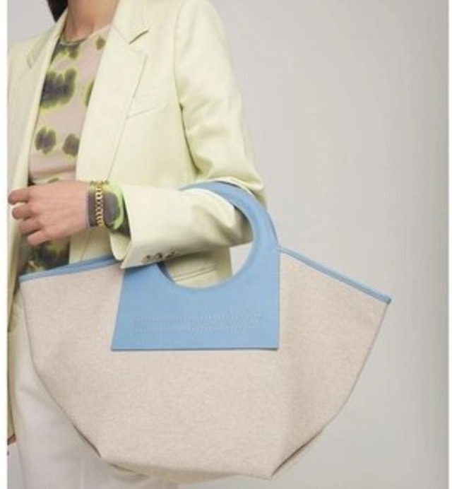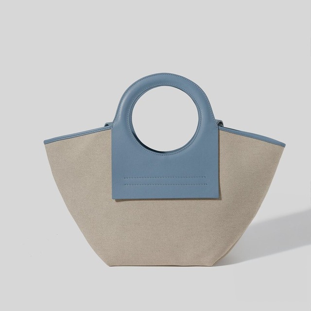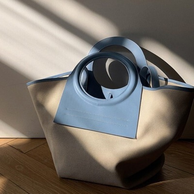 持ち手の水色レザーがアクセントになってかわいいトートバッグ♡キャンバス地との相性もイイ♡
