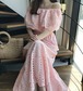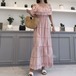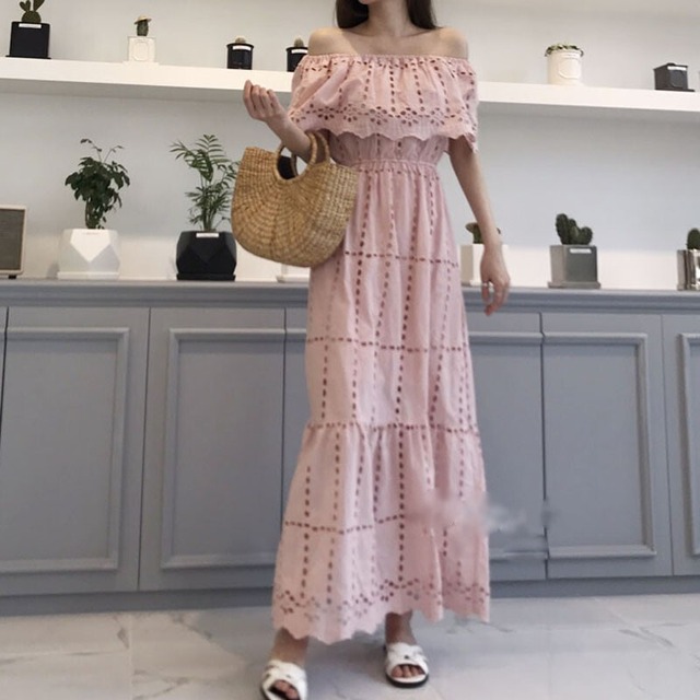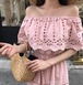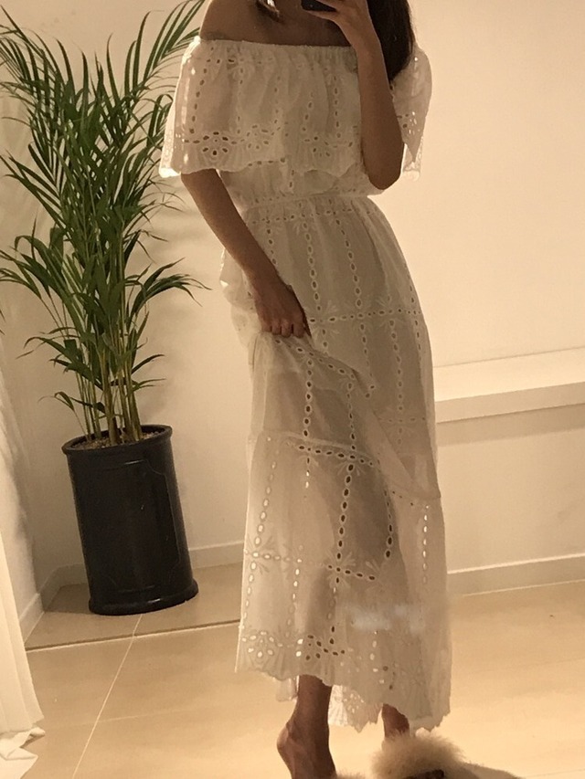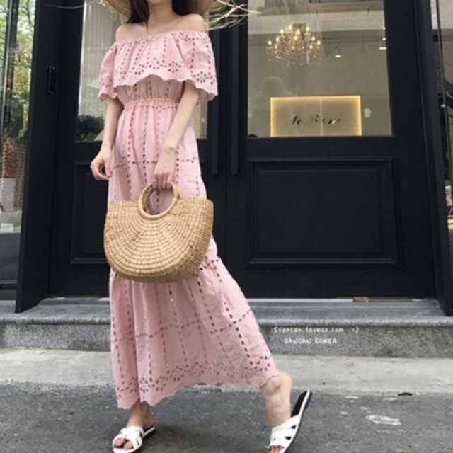 大ぶりレースでオフショルダーがカワイイワンピース♡淡いピンクとホワイトの2色展開♡