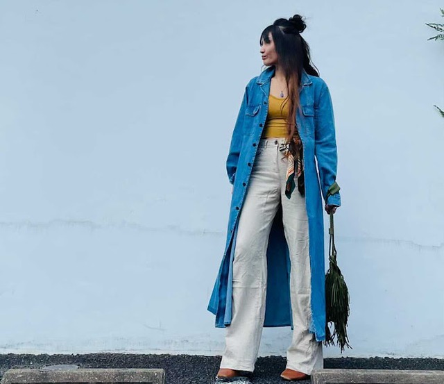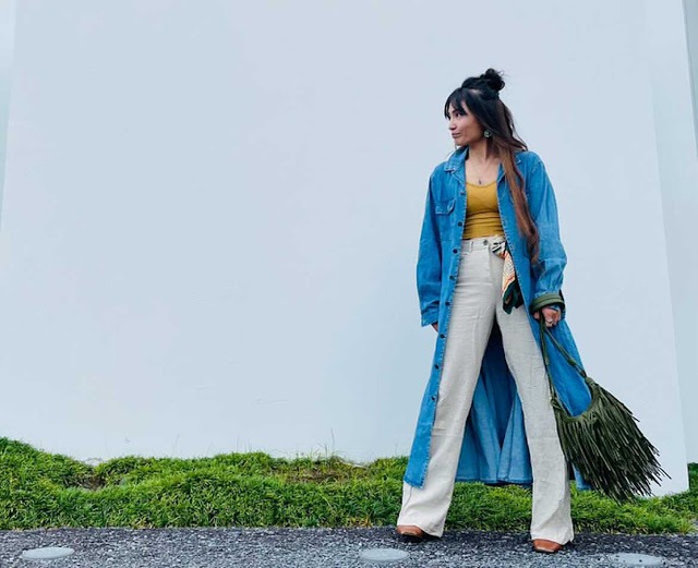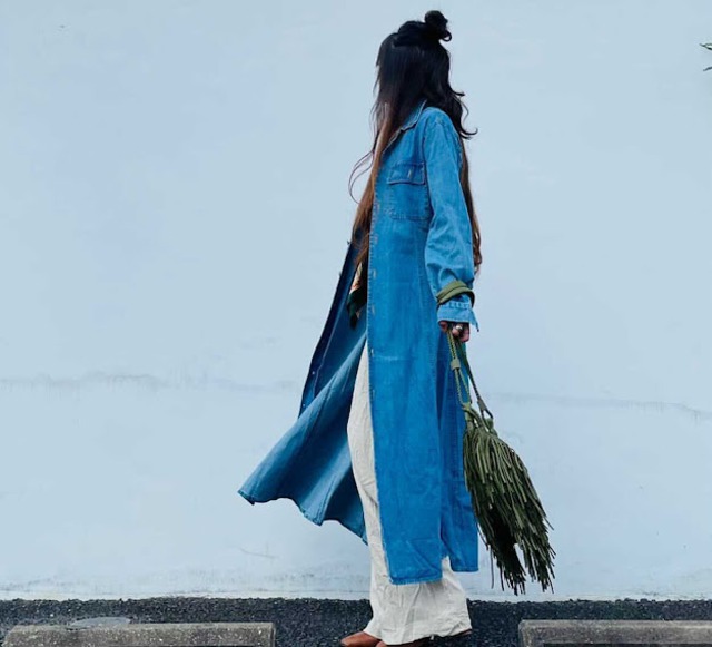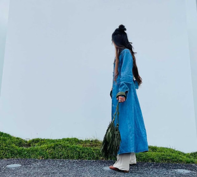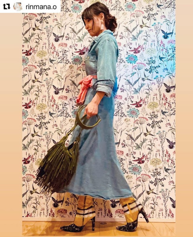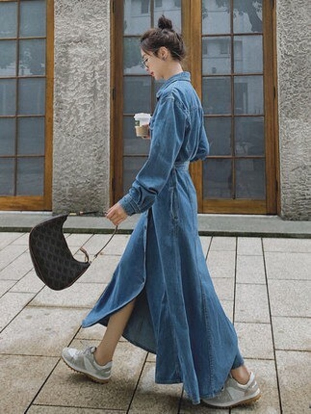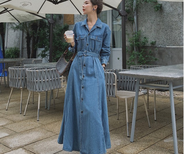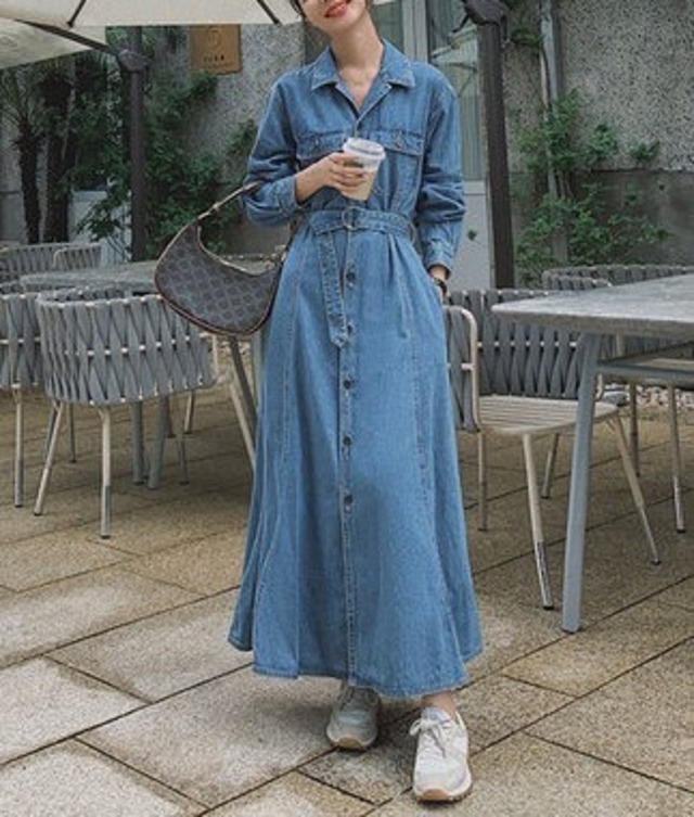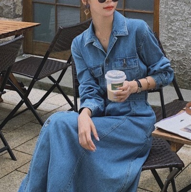 長袖でデニムのロングワンピース♡スタイルよく見えるデザインなのもうれしい♡